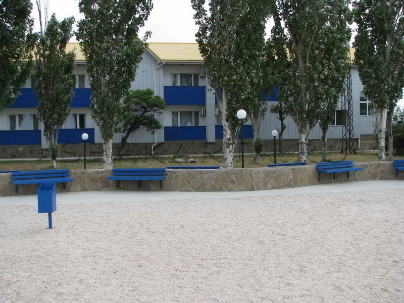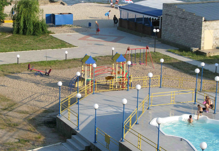 Сервис и инфраструктура: собственный пляж 5 500 м.кв., стационарные навесы, шезлонги, детский городок, трехразовое питание (гибкая система оплаты), зоны отдыха, беседки, два бассейна, мангал на прокат, автостоянка (бесплатно).